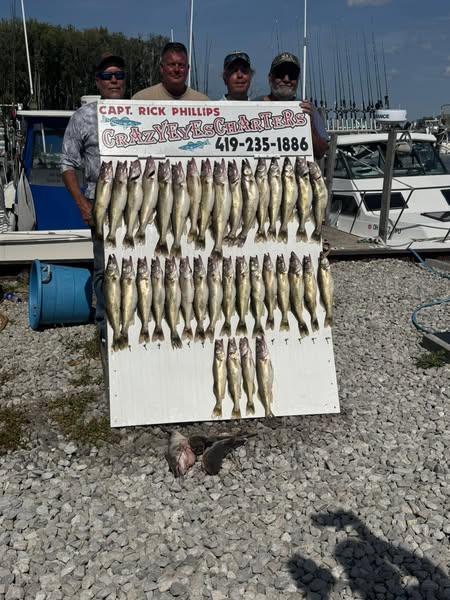 We had such a fantastic time fishing on Lake Erie with Captain Rick and his First Mate, Nicole on 7/11/25 and Crazy Eyes Charters. The boat was clean, stocked and prepared for everything we could possibly need for the day. This was my first fishing charter, but I’m told we were even lucky enough to have bathroom accommodations, if necessary, which is rare to find on a charter boat. That alone counts for big points towards what I call customer satisfaction👍🏻 The crew made an excellent team, had a great relationship with saucy banter between them and our captain didn’t waste all his orneriness on his first mate, he had plenty to share with his charter guests which really made for a fun, playful day catching fish. Rick put us on the Walleye and we caught our limit of nice big fish in about 3.5-4 hours. Will definitely book with them again and highly recommend you check them out if you are looking for a great charter experience on Lake Erie. Thanks Nicole and Rick!🎣